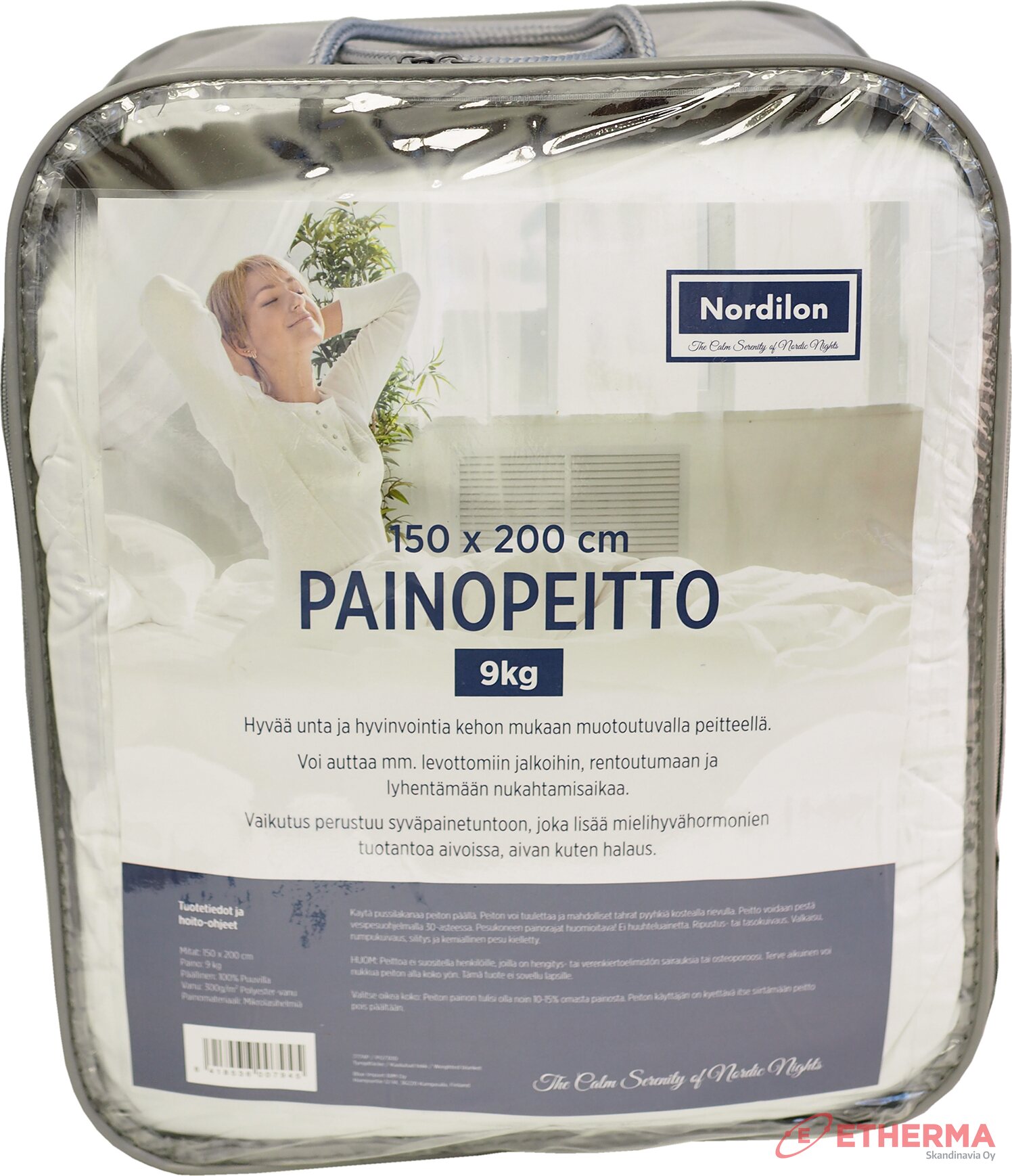 Korkealaatuinen painotettu peite. Painopeitto saatttaa lievittää stressiä ja jännitystiloja, sekä helpottaa nukahtamista. Paino 9kg, mitat: 150x200 cm. Peiton painon tulee olla n. 10% omasta painosta.