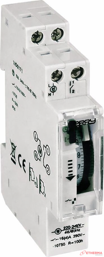 Ohjaus: mekaaninen tappikehä ja valintakytkin (jatkuva ON / ajastinasento)
