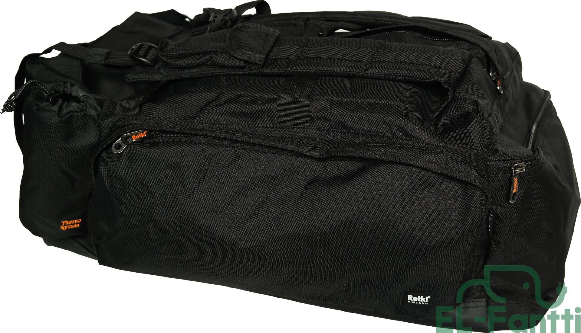 sateenkestävä. Paikat kengille ja pulloille. Tilavuus 70l. Mitat 75 x