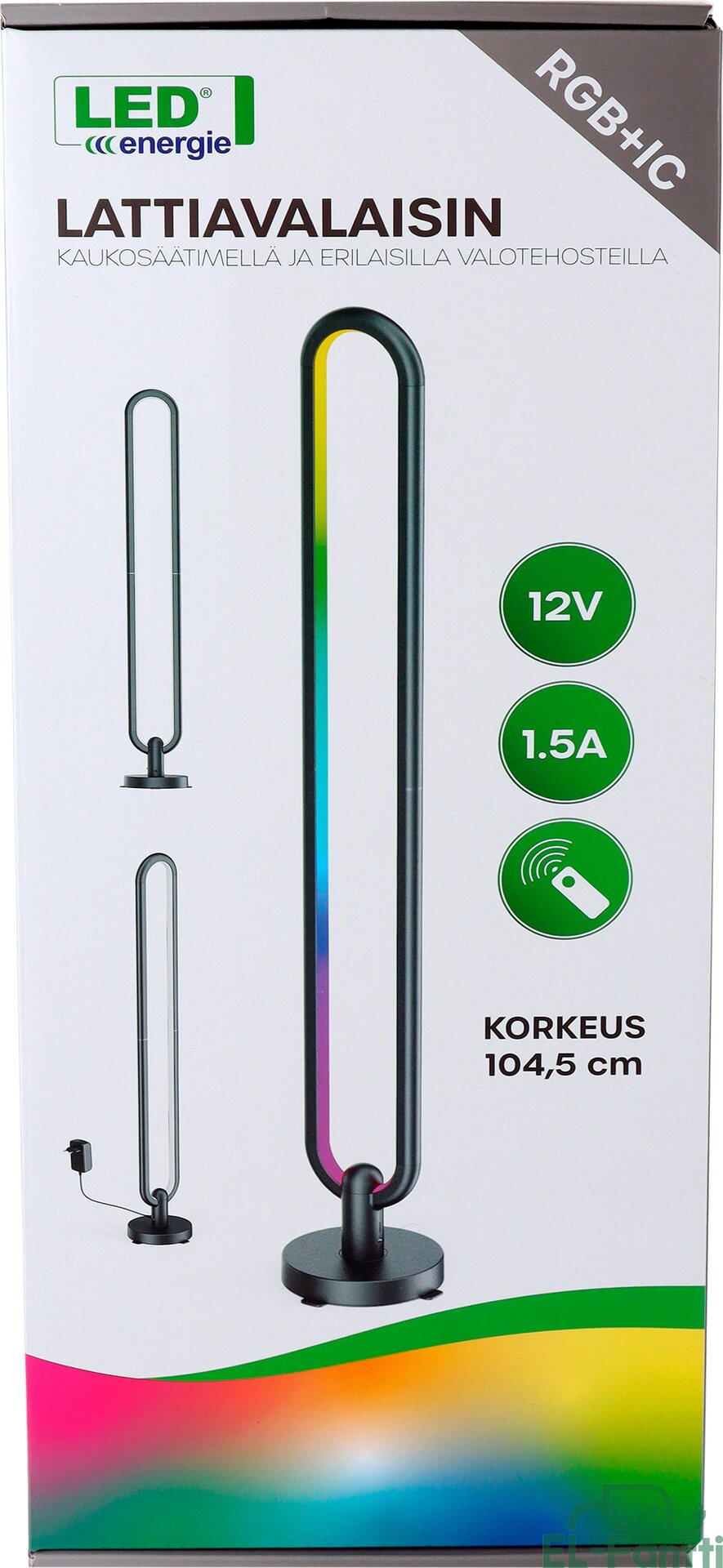 Monipuolinen ja näyttävä valaisin kaukosäätimellä tuo tunnelmaa ja tehoa tilaan. Tämä 104,5 cm korkea design-valaisin tarjoaa runsaasti erilaisia valotehosteita ja musiikkitoiminnon. Valaisimen kaukosäädinohjaus mahdollistaa valaistuksen säätämisen vaivattomasti tilanteen mukaan – rauhallisesta tunnelmavalosta vauhdikkaisiin valoefekteihin. Valaisimessa käytetään erillisiä IC-ohjattuja LED-piirejä, joiden ansiosta valoefektit, kuten juoksevat värit ja dynaamiset tehosteet, ovat mahdollisia – toisin kuin perinteisissä RGB-nauhoissa, joissa koko nauha vaihtaa väriä samanaikaisesti. Tekniset tiedot: - Käyttöjännite: 12 V - Teho: 20 W - Valovirta: 1400 lm - Värilämpötila: 3000 K - Korkeus: 104,5 cm - Leveys 130 mm - LED-valo 2 m - Johdon pituus 1,5 m - Ohjaus: Kaukosäädin - Valotehosteet: Useita väri- ja tehovaihtoehtoja, musiikkisynkronointi - Materiaalit: Alumiini, ABS-muovi, silikoni Takuu 36 kk
