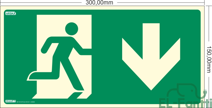 Poistumisreitti nuoli alas