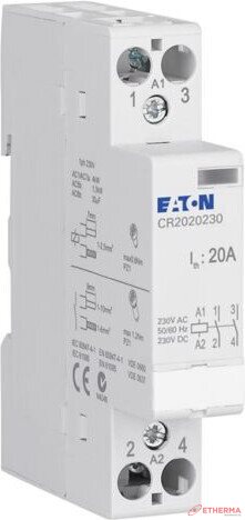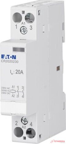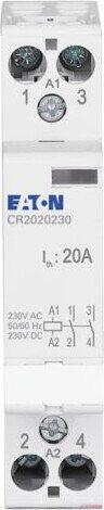 Asennuskontaktori, ohjauspiirin nimellisjännite 230V AC/DC, nimelliskäyttövirta AC1:ssä 20A, toiminto: 2NO, yksityiskohdat IEC/EN 61095, IEC/EN 60947-4-1:n mukaan, vakiomitta edessä 45 mm, asennusleveys 1 MU, kiinnitys ylähattukiskoon